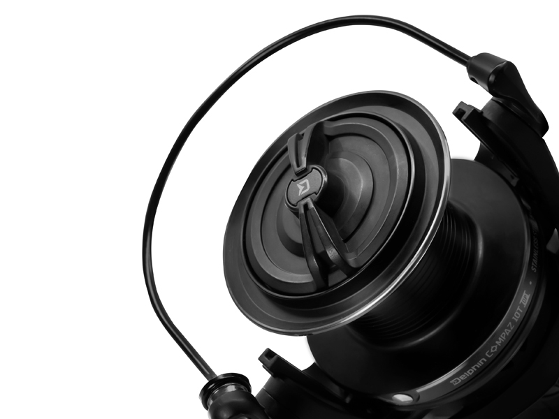 Jedním ze specifických prvků navijáku COMPAZ je velmi silná rychlobrzda, pomocí které je možné úplné utažení jen jednou otočkou matice. Takový typ brzdy umožňuje velmi rychle reagovat na výpady zdolávané ryby.