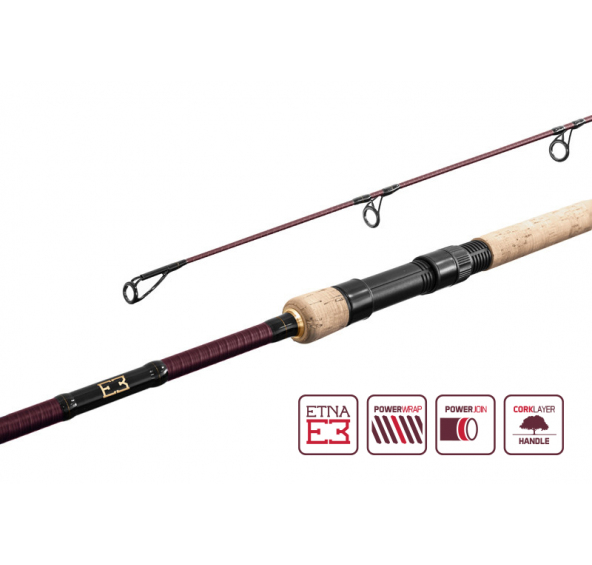 Řada vínově bordových prutů Delphin ETNA E3 Cork je již třetím pokračovatelem nejúspěšnější série kaprových prutů značky Delphin. Snažili jsme se zachovat všechno to, co dělá tyto pruty bestsellery, ale i přidat něco zcela nového, abychom opět posunuli výše pomyslnou laťku kvality, požitku z rybolovu a spolehlivosti. Právě to stálo za zrodem vývoje technologie Delphin 2Power. Tato technologie se skládá ze dvou podsegmentů, a to PowerWrap a PowerJoin. Oba segmenty jsou aplikovány na každém modelu série E3. PowerWrap si všimnete okamžitě při kontaktu s prutem. Jedná se o dodatečné vinutí karbonu po celé délce prutu, kterým jsme dosáhli výrazného zvýšení pevnosti. Také zvyšuje odolnost vůči momentovému přetížení prutu. V praxi to znamená výrazně vyšší životnost prutu a snížení náchylnosti na mechanické poškození. Sekundárním aspektem tohoto vinutí je vizuálně velmi přitažlivý prvek strukturovaného blanku. Vyslechli jsme ale i hlasy fanoušků korku a po odmlce v druhé generaci jsou příjemné korkové rukojeti opět opcí Etny. PowerJoin není tak nápadným detailem jako wrap, je však neméně důležitým prvkem tohoto povedeného celku. Obnáší totiž malý kovový kroužek na konci každého spoje, což výrazně snižuje možnost tříštivého poškození blanku. Navzdory této zesilující kúře jsme zapracovali na štíhlosti blanků a tedy opět můžeme směle potvrdit, že patří jednoznačně mezi nejštíhlejší ve své třídě. Také si blanky zachovávají své nadprůměrně výborné vlastnosti z hlediska nahazování i zdolávání s parabolickou akcí. Blanky jsou osazeny kvalitními odlehčenými SiC očky, které skvěle vedou vlasec. E3 s sebou přináší i modely, které jste dosud v naší nabídce neměli možnost vidět. Jsou to dvoudílné pruty o délkách 2.7m a 3.3m, ideální na lov na menších, či zarostlých vodách, ale zároveň výborné univerzály na vývažku a zdolávačku z člunu. Technické parametry: Model 270cm / 2.50lbs Počet dílů: 2 Průměr blanku nad rukojetí: 11,13mm Počet oček: 6 Transportní délka: 140cm Hmotnost: 258g Rukojeť: Korek Délka rukojeti (od spodní části prutu po střed sedla): 53cm Velikost naváděcího očka: #40 Model 300cm / 3.00lbs Počet dílů: 2 Průměr blanku nad rukojetí: 11,53mm Počet oček: 6 Transportní délka: 154cm Hmotnost: 302g Rukojeť: Korek Délka rukojeti (od spodní části prutu po střed sedla): 56cm Velikost naváděcího očka: #40 Model 330cm / 3.00lbs Počet dílů: 2 Průměr blanku nad rukojetí: 12,07mm Počet oček: 6 Transportní délka: 170cm Hmotnost: 318g Rukojeť: Korek Délka rukojeti (od spodní části prutu po střed sedla): 59cm Velikost naváděcího očka: #40 Model 360cm / 3.00lbs Počet dílů: 2 Průměr blanku nad rukojetí: 13,22mm Počet oček: 6 Transportní délka: 187cm Hmotnost: 358g Rukojeť: Korek Délka rukojeti (od spodní části prutu po střed sedla): 63 Velikost naváděcího očka: #50 Model 390cm / 3.00lbs Počet dílů: 2 Průměr blanku nad rukojetí: 15,11mm Počet oček: 6 Transportní délka: 199cm Hmotnost: 530g Rukojeť: Korek Délka rukojeti (od spodní části prutu po střed sedla): 68cm Velikost naváděcího očka: #50 Model 360cm / 3.00lbs Počet dílů: 3 Průměr blanku nad rukojetí: 13,06mm Počet oček: 6 Transportní délka: 126cm Hmotnost: 384g Rukojeť: Korek Délka rukojeti (od spodní části prutu po střed sedla): 63cm Velikost naváděcího očka: #50