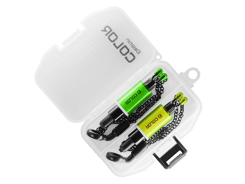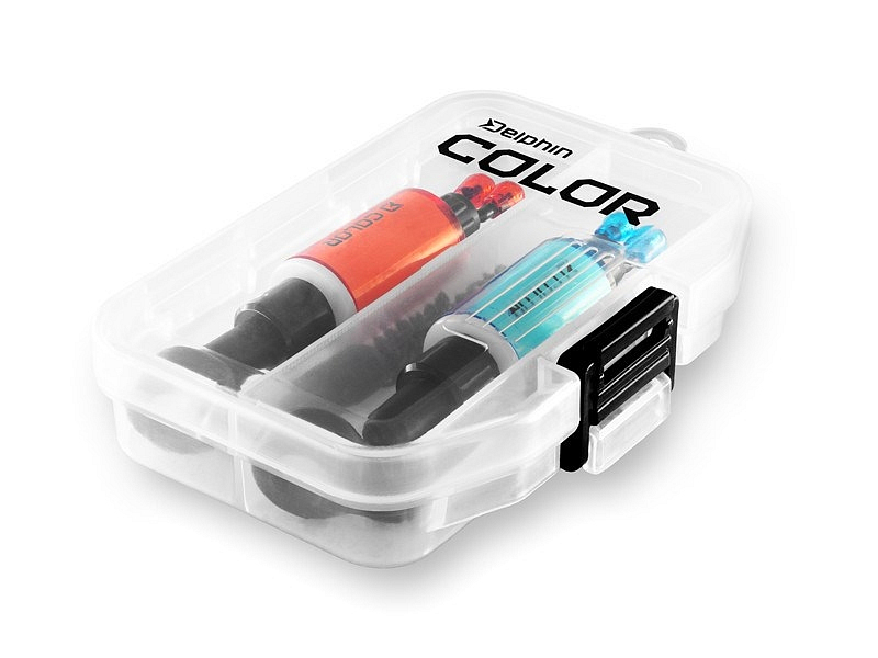 Sada Delphin COLOR je dodávána v praktické uzavíratelné krabičce, která chrání indikátory před poškozením během transportu a usnadňuje jejich přehledné uložení v rybářské tašce. Na výběr je balení v kombinaci modrá/červená nebo žlutá/zelená barva.
