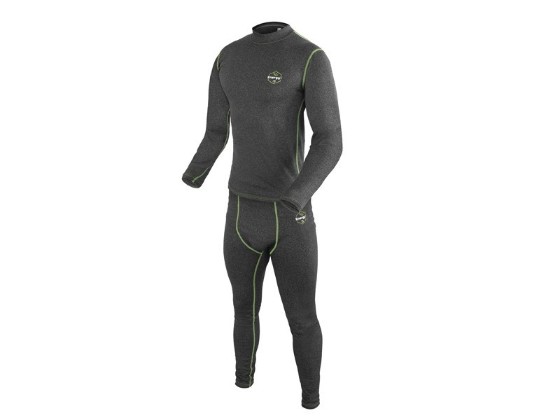 Termoprádlo speciálně navržené pro rybáře, kteří milují volnost pohybu. Elastický materiál a ergonomický střih se dokonale přizpůsobí vaší postavě, díky čemuž budete nejen vypadat dobře, ale rovněž vám zajistí dokonalý komfort během nošení. Hřejivý materiál se postará o vaši teplotní pohodu a prodyšnost materiálu zároveň umožní tělu dýchat. Sportovní design v tmavě šedé barvě je doplněn o zeleno bílé logo a logo kapra na pravém rameni. Kromě rybolovu je termoprádlo vhodné i pro vyznavače aktivního životního stylu a pro každého, kdo si chce užít aktivní pobyt venku v suchu a teple. Správnou velikost oblečení si lze vybrat na základě velikostní tabulky. Vrchní díl Disponuje dlouhými rukávy a vyvýšeným límcem, což přispívá k udržení optimální tělesné teploty. Elastický límec, konce rukávů a spodní část jsou dodatečně prošívané pro zajištění dokonalého přilnutí ke kůži, aby se tím minimalizovaly úniky tepla. Spodní část vrchního dílu je mírně prodloužena, aby docházelo k ideálnímu krytí se spodky Delphin Energy X i při pohybově namáhavějších aktivitách. Spodní díl Pružný pás se svojí elasticitou přizpůsobí každému typu postavy a při nošení horního dílu zajistí jeho polohu i během aktivního pohybu. K udržení tepelného komfortu přispívá i zúžené ukončení spodního dílu v oblasti kotníků.