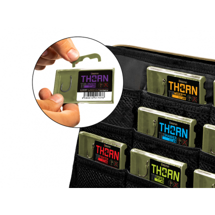 Delphin THORN je prémiová řada kaprařských háčků nejvyšší kvality. Díky moderním technologiím, které byly použity při výrobě, jsou tyto háčky synonymem nekompromisní pevnosti a maximální ostrosti. Háčky ze série THORN disponují titanX povrchovou úpravou, čímž nabývají matný šedý povrch, který je navíc dokonale hladký pro snadné proniknutí do kapří tlamy. TitanX se stará také o zpevnění a odolnost celého háčku. Pomocí aplikované technologie Ultrapoint 4.8 bylo možné vytvořit delší hrot, který poskytuje přímo neuvěřitelnou ostrost. Háčky Delphin THORN jsou baleny v praktické krabičce, ve které bude jejich ostří vždy důkladně chráněno. Na krabičce se navíc nachází držák s očkem na zavěšení do prodejen, který lze snadno odstranit odlomením bez jakéhokoli nástroje, díky čemuž krabička ve vaší výbavě zabere podstatně méně místa. THORN Longer je typický svým dlouhým a rovným ramínkem se zahnutým očkem, malým obloukem a rovným dlouhým hrotem. Všechny tyto vlastnosti napomáhají extra rychlému otočení a vniknutí háčku do tlamy kapra. Pokud hledáte model, na který budete mít spoustu záběrů a dobře si zachytáte, pak je Longer tou správnou volbou právě pro vás. Tento tvar háčku je univerzální, takže s ním lze lovit na potápivé, neutrálně vyvážené i plovoucí nástrahy.
