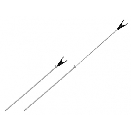 Velmi pevná, teleskopická, přední vidlička s držákem na prut. Vyrobena je z oceli, díky čemuž je výjimečně pevná. Vrchní část vidličky je pevně osazena držákem prutu. Požadovanou výšku nastavíte jednoduše pomocí závitu s maticí, která slouží k zafixování výšky rybářské vidličky.