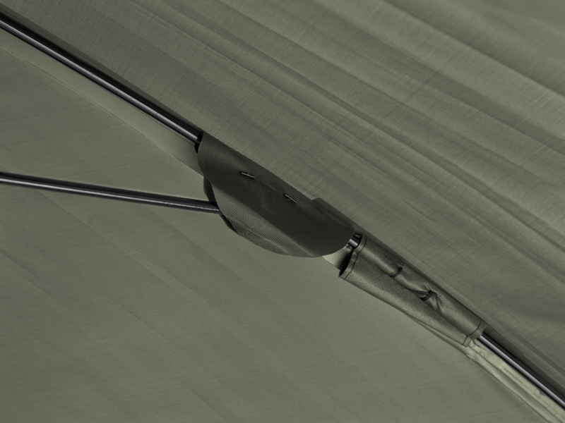 Deštník disponuje rozměrem přes kopuli až 320 cm, čímž umožňuje do něj bez problémů vejít dvě lehátka a mnoho dalšího příslušenství.