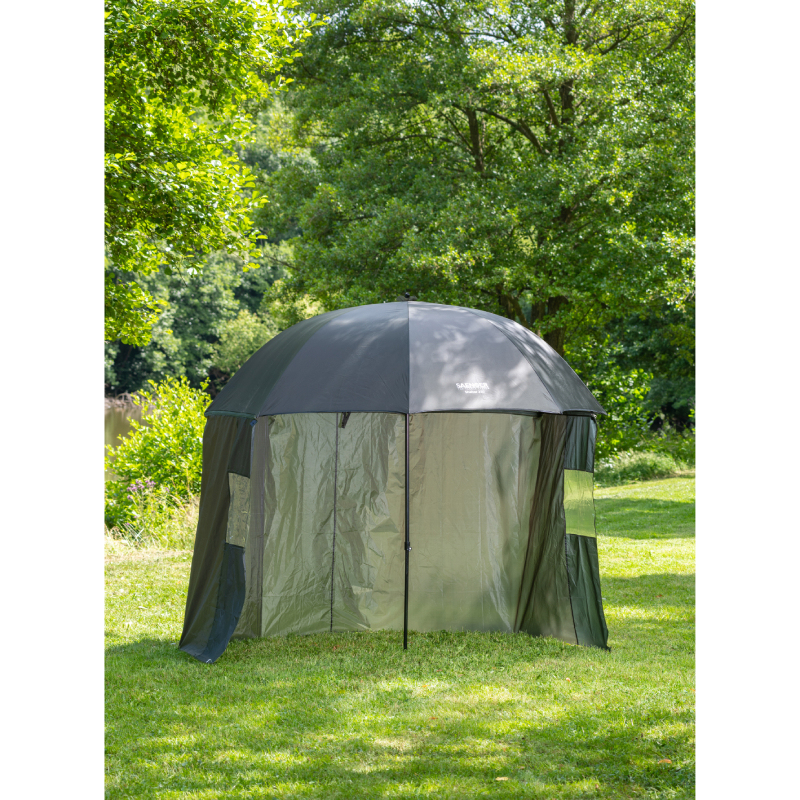 Rybářský deštník s bočnicí z 190T polyesteru. Podlepené švy, teleskopická robustní kovová středová tyč a žebra z ocelových drátů. Deštník lze naklápět. Průměr při rozložení je 190 cm, výška bočnice 130 cm a maximální výška 180 cm. Díky bočnici budete perfektně ochráněni před deštěm a větrem. Pro zvýšení stability lze Shelter 2,50 ukotvit pomocí kolíků.Nízká přepravní váha 2,5 kg. Dodáván v přepravní tašce. Osm kolíků je součástí balení. průměr 190 cm maximální výška 180 cm vstupní výška 130 cm obvod přes kopuli 250 cm materiál: 190T polyester teleskopická robustní kovová tyč ohýbatelný přepravní taška 8 kolíků hmotnost: 2,5 kg...
