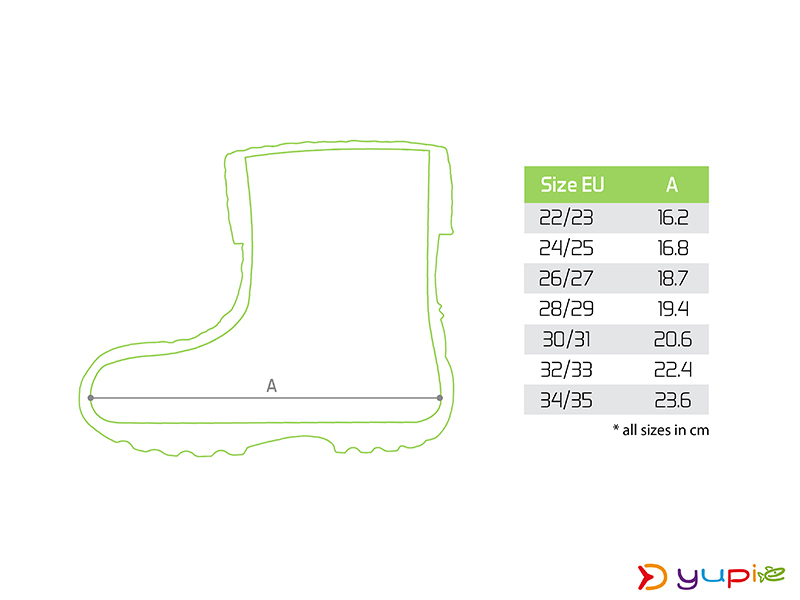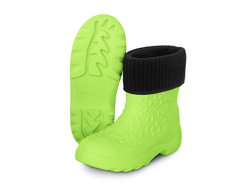 Podrážka má výrazný grip, který snižuje riziko uklouznutí na mokrém nebo nerovném terénu. Holínky jsou vyhotoveny v univerzální, výrazné zelené barvě, čímž jsou vhodné pro chlapce i dívky a nabízíme je v široké škále velikostí.