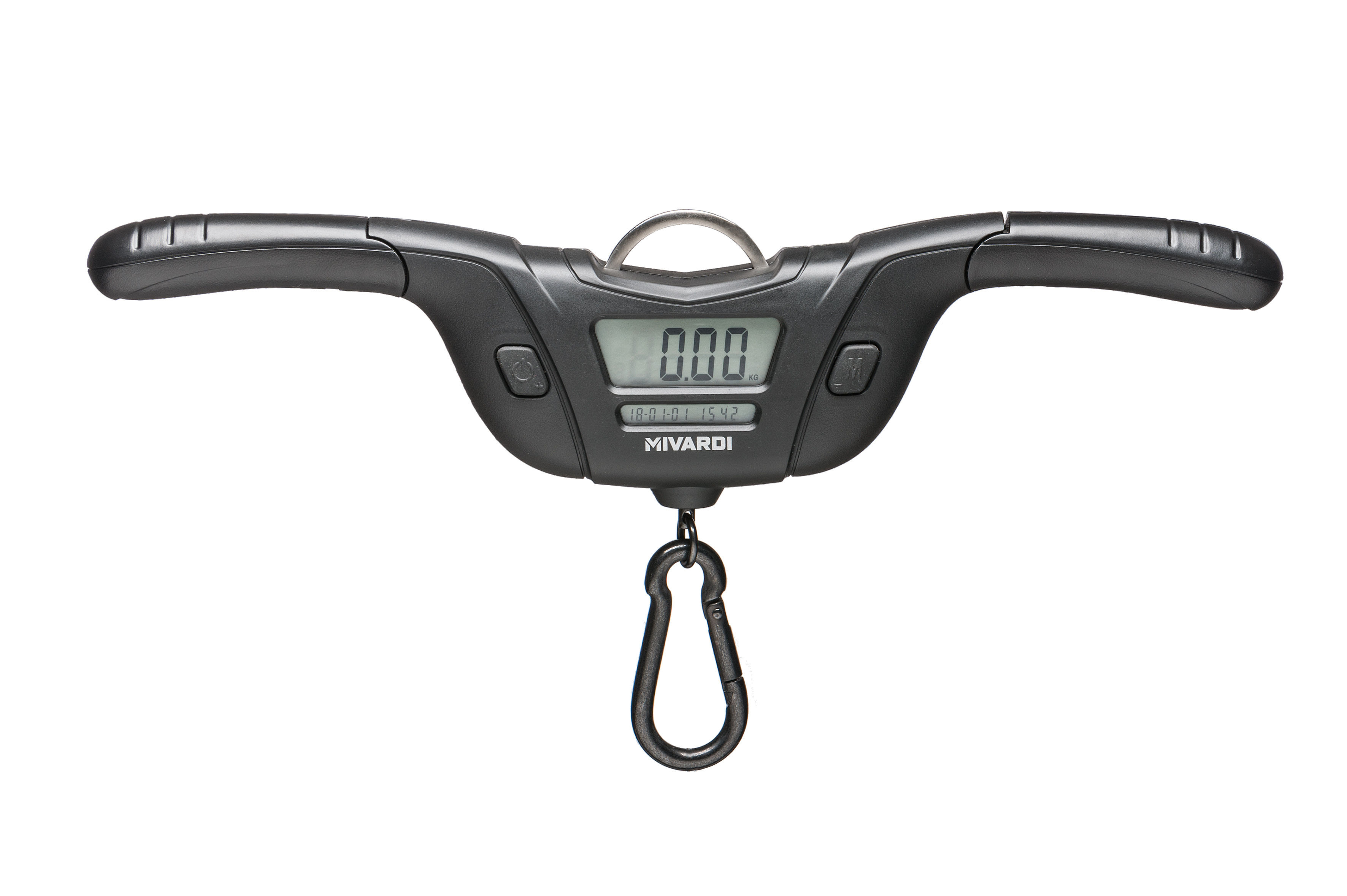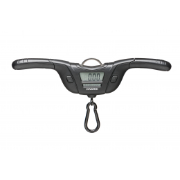 Luxusní digitální váha s masivními sklápěcími rukojeťmi, pevnostním závěsným okem a kvalitní karabinou pro zavěšení vážícího saku....