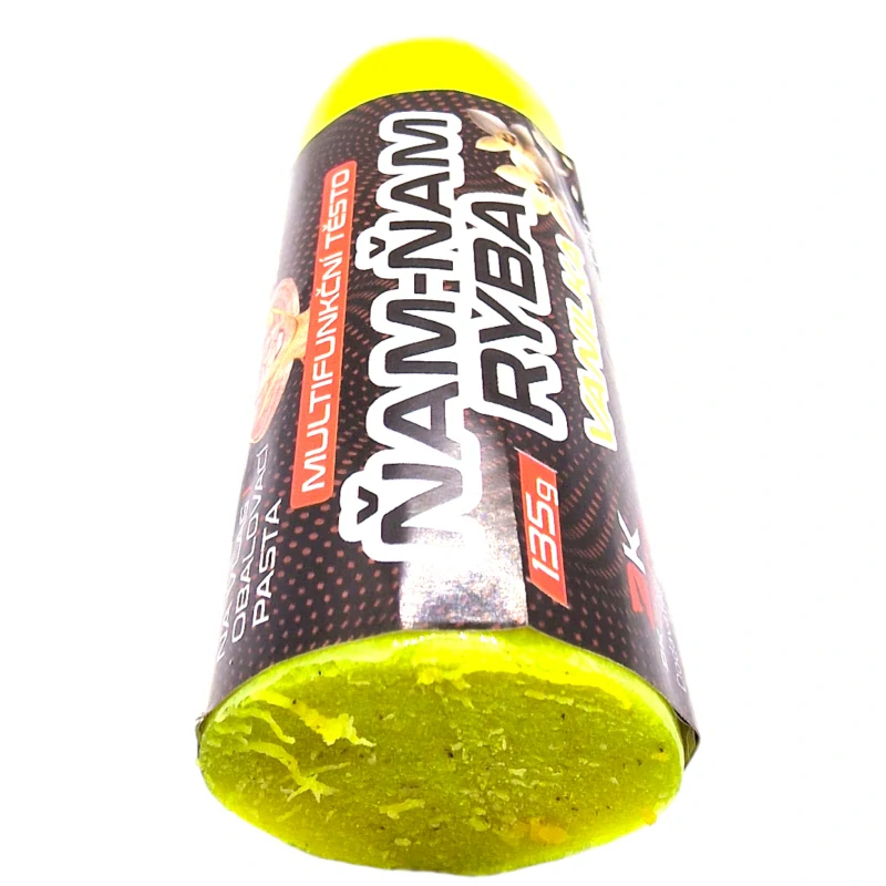 Ňam-Ňam ryba je další z výrobků, které Šon uvádí na trh. A jak je jeho zvykem, o inovace a nápady není nouze. Originální balení vás zaujme. Nejvíce vás ale překvapí možnosti využití. Je jich nepřeberné množství a vy můžete těsto: nastražit jednoduše na háček nastražit mimo háček použít jako obalovací pastu na boilies případně obalit olovo a použít jako vnadící směs uválet si kuličku jako boilies nakrájet na kostičky nebo jakékoliv tvary Vymyslete si svůj vlastní způsob lovu. My vám garantujeme, že Ňam-Ňam ryba pomalu uvolní do okolí atraktanty, vůně a jemné částečky, které velmi lákají ryby. I přes tyto vlastnosti vydrží nastražena dostatečně dlouhou dobu. Po otevření doporučujeme obalit fólií a uložit do ledničky, následně spotřebujte co nejdříve. Medová příchuť je velmi tradiční a vyzkoušená. V kombinaci s fluo žlutou barvou jde o vítěznou kombinaci! Váha: 135 g Příchuť: Med...