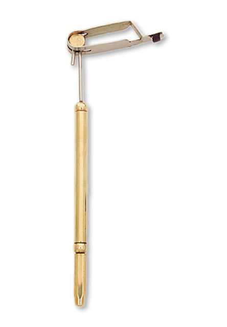 Rotační skřipec na dlouhém držadle pro pohodlné natočení srpku nebo jiného vázacího materiálu okolo raménka háčku.