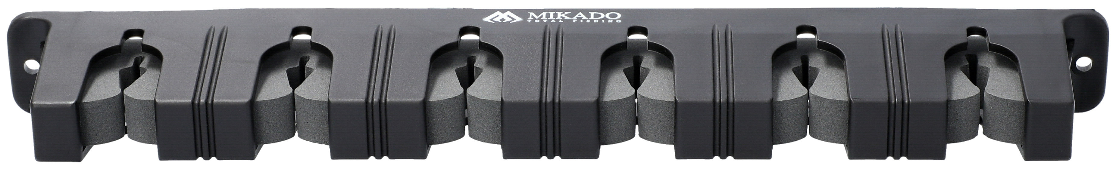 Lehký a kompaktní, opatřený bezpečnou pěnou pro blank. Dvoudílný držák pro bezpečné a přehledné uskladnění rybářských prutů určený k montáži na zeď. Provedení na 6 prutů.