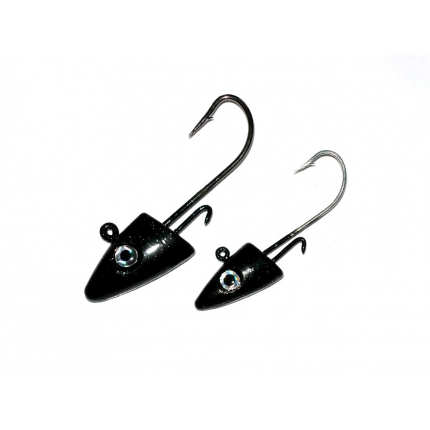 Jigová hlavička tvaru "rybí hlava" v nejčastěji používaných gramáží 35, 50, 60 gramů, barveno vypalovacími práškovými barvami, 3D oči pevně vlepené do barvy, jig háčky 6/0 Eagle Claw (USA), perfektně pasují k riperům MYSTIC..