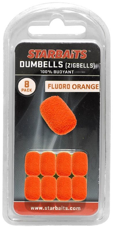 Dumbells - plovoucí pěnová nástraha. Chová se jako plovoucí boilie. Je vyrobena ze speciálního materiálu, který dokonale plave. Vydrží plavat dlouhé hodiny během celého lovu. Dobře absorbuje esenciální oleje, aromata a dipy. Tuto nástrahu lze použít v kombinaci s klasickým potápivým boiliem pro jeho zvýraznění nebo i samotnou při chytání ve sloupci metodou Zig Rig. Dumbells lze jednoduše upravovat nůžkami a tak docílit dokonalého vyvážení nástrahy. Ideální na silně pochytávané vody a opatrné kapry. Barvy žlutá, bílá, černá a růžová. V balení 8 ks.