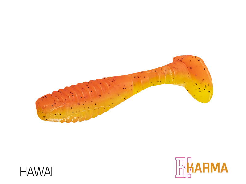 Design modelu KARMA jsme od počátku brali jako neklasické řešení klasického modelu. Cílem bylo vytvořit nástrahu se širokým záběrem použití, ale po našem. Již při prvním pohledu si můžete všimnout, že poměr velikosti těla k ocasu nástrahy je odlišný od běžného. Větší ocas nástrahy zapříčiňuje atypický pohyb nástrahy, který kromě kmitání ocasu přidává i jemné převalování tělíčka, což vytváří dojem zranitelného jedince. Tento pohyb je pro ryby nesmírně atraktivní a přináší vám nové možnosti v práci s nástrahou. Mezi spojením těla nástrahy a ocasu jsou vymodelovány tři zářezy, které dodávají chodu nástrahy uvěřitelnost. Samotné tělo nástrahy je na zádech a břiše opatřeno vroubkováním. Má to dva důvody. Prvním je zvětšení vibrací ve vodě. Druhým důvodem je usnadnění nastražení nástrahy na háček. Pomocí zářezů si můžete přesně vyměřit, kde bude háček z nástrahy vycházet. Proporční napíchnutí jigu je pak jednoduché. Přední část nástrahy v oblasti tlamy je upravena výřezem kvůli lepšímu dosednutí nástrahy k jigové hlavičce. Asi se ptáte, co vlastně znamená označení UVs. Jednotlivé barevné kombinace jsou totiž opatřeny UV barvami, které způsobují lepší odraz slunečního záření pod vodou, a tím pádem se nástrahy stávají nepřehlédnutelnými. Nezapomněli jsme ani na pachovou stopu, kterou pryžové nástrahy zanechávají ve vodě. Právě S symbolizuje, že nástrahy obsahují sůl a rybí aroma a jsou tak neodolatelným cílem predátorů. Provedení KARMA UVs nabízí širokou škálu těch nejúčinnějších barevných provedení, která byla vybrána na základě dlouhodobých testů na vodních plochách po celé Evropě. Balení DuoPACK Nástrahy jsou baleny v unikátním balení Delphin DuoPACK. To umožňuje samotné nástrahy prodávat buď zavěšené v blistrech jako celek, nebo jako kusovky z plnobarevného prezentéru! Samotný blistr DuoPACK obsahuje 5ks nástrah. Ucelené krabicové balení DuoPACK tvoří 6ks takových blistrů jedné barvy a délky. Hmotnost nástrahy: 5,5g