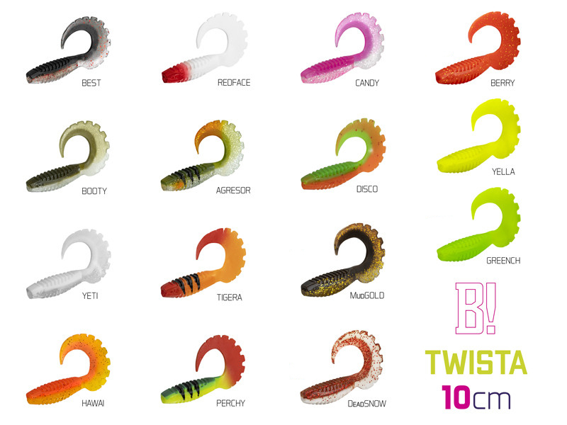 Masivní a neodolatelný ocas, který i při tom nejpomalejším pohybu ve vodě vytvoří dráždivý efekt. To je nejsilnější vlastnost nástrahy Delphin TWISTA UVs. Výrazný ocas, navržený v netypickém tvaru s výřezy je vhodný do každé situace. Ať už jste milovníkem rychlého, agresivního vedení nástrahy nebo opačně pomalým a přirozeným tahem. TWISTA UVs nezklame a bude stále velmi efektivní. Tělo nástrahy bylo navrženo s vroubky kvůli dvěma důvodům. První, velmi důležitý, je zvýšení atraktivity nástrahy a zvětšení vibrací ve vodě. Druhým důvodem je usnadnění nastražení nástrahy na háček, pomocí kterých si můžete přesně vyměřit, kde bude háček z nástrahy vycházet. Přední část nástrahy je upravena výřezem kvůli lepšímu dosednutí nástrahy k jigové hlavičce. Asi se ptáte, co vlastně znamená označení UVs. Jednotlivé barevné kombinace jsou totiž opatřeny UV barvami, které způsobují lepší odraz slunečního záření pod vodou, a tím pádem se nástrahy stávají nepřehlédnutelnými. Nezapomněli jsme ani na pachovou stopu, kterou pryžové nástrahy zanechávají ve vodě. Právě S symbolizuje, že nástrahy obsahují sůl a rybí aroma a jsou tak neodolatelným cílem predátorů. Provedení TWISTA UVs nabízí širokou škálu těch nejúčinnějších barevných provedení, která byla vybrána na základě dlouhodobých testů na vodních plochách po celé Evropě. Balení DuoPACK Nástrahy jsou baleny v unikátním balení Delphin DuoPACK. To umožňuje samotné nástrahy prodávat buď zavěšené v blistrech jako celek, nebo jako kusovky z plnobarevného prezentéru! Samotný blistr DuoPACK obsahuje 5ks nástrah. Ucelené krabicové balení DuoPACK tvoří 6ks takových blistrů jedné barvy a délky.
