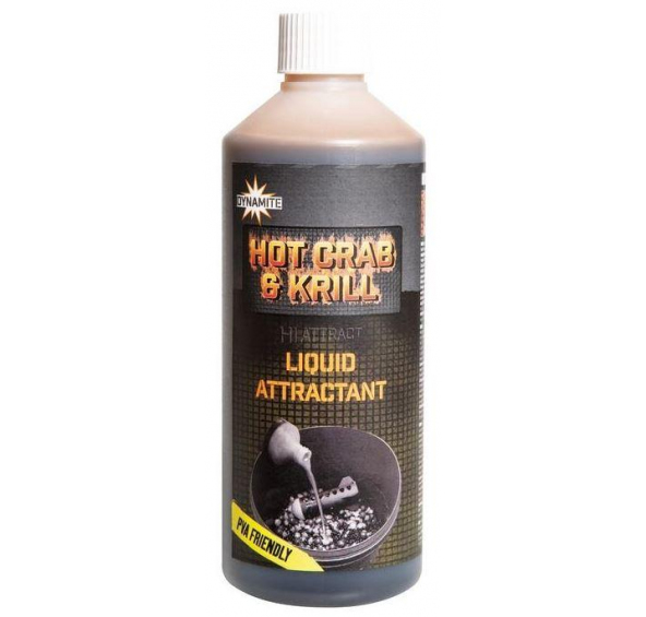 Popis produktu Dynamite Baits Liquid Attractant Hot Crab&Krill 500 ml