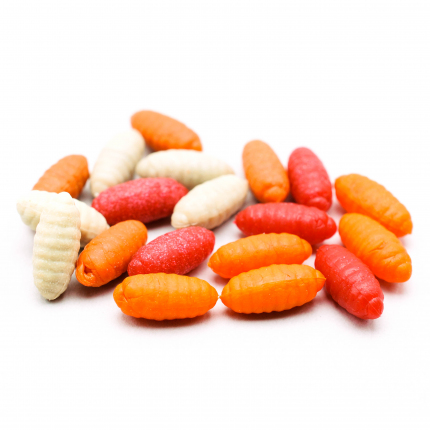 Dokonalá imitace kukly červa, dá se použít jako nástraha i jako rovnátko. V balení jsou 3 různé barvy a 20ks