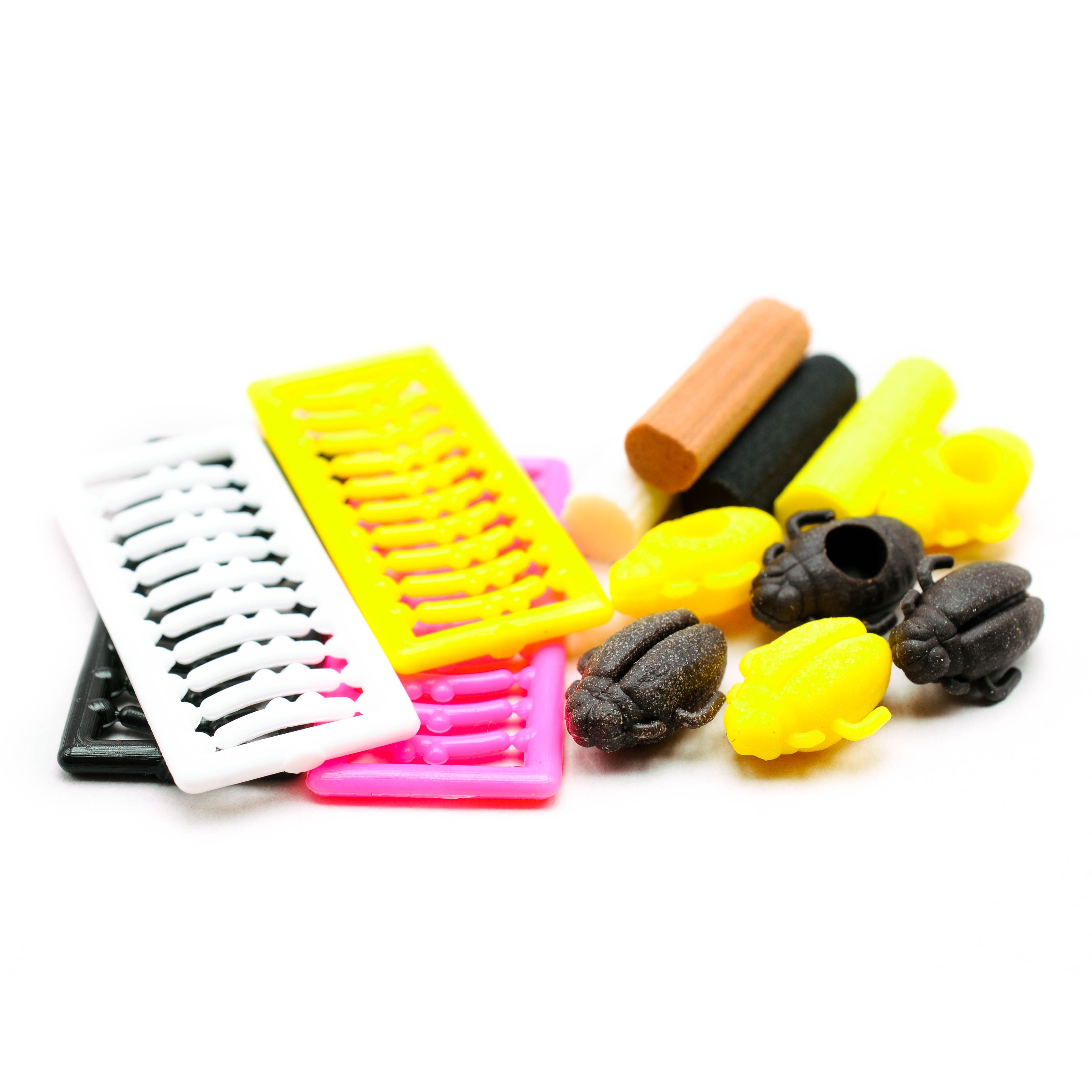 Balení obsahuje 6 umělých brouků (3 žlutý + 3 černý), 4 pěnové tyčky různých barev a 4 sady speciálních zarážek různých barev....