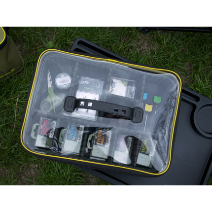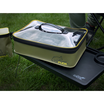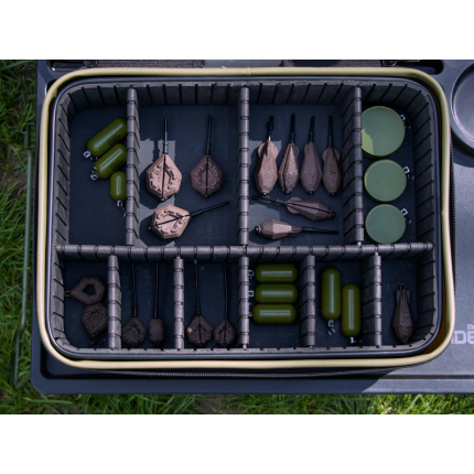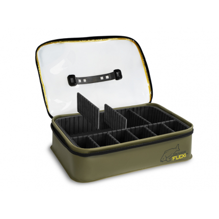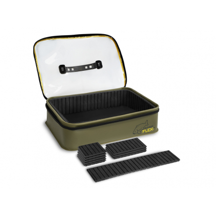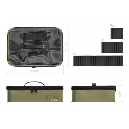 Delphin NuEVA FLEXI je důmyslně navržený organizér vyrobený z EVA materiálu, který Vám umožní uložení velkého množství rybářského příslušenství, od olověných zátěží až po samotné návnady a nástrahy. Díky použitému EVA materiálu a kvalitním svarům je organizér nepromokavý, čímž dokonale ochrání Vaši rybářskou výbavu i za deště. Kromě nepromokavosti se tento materiál velmi lehce myje a neabsorbuje pachy. Velkou výhodou organizéru je jeho univerzálnost. Díky odnímatelné vnitřní části a odnímatelným přepážkám, si jí můžete snadno upravit přesně podle vašich potřeb. Aby se předešlo poškození obsahu, jsou přepážky obaleny v EVA pěně. Na pěně se nacházejí drážky, které umožňují přizpůsobit vnitřní prostor dle Vašich požadavků. Víko organizéru je vyrobeno z průhledného materiálu, díky kterému budete mít vždy dokonalý přehled o obsahu uvnitř. Pro lepší manipulaci je na víku pevná gumová rukojeť. Technické parametry: Vnější rozměr: 38.5x28.5x10cm