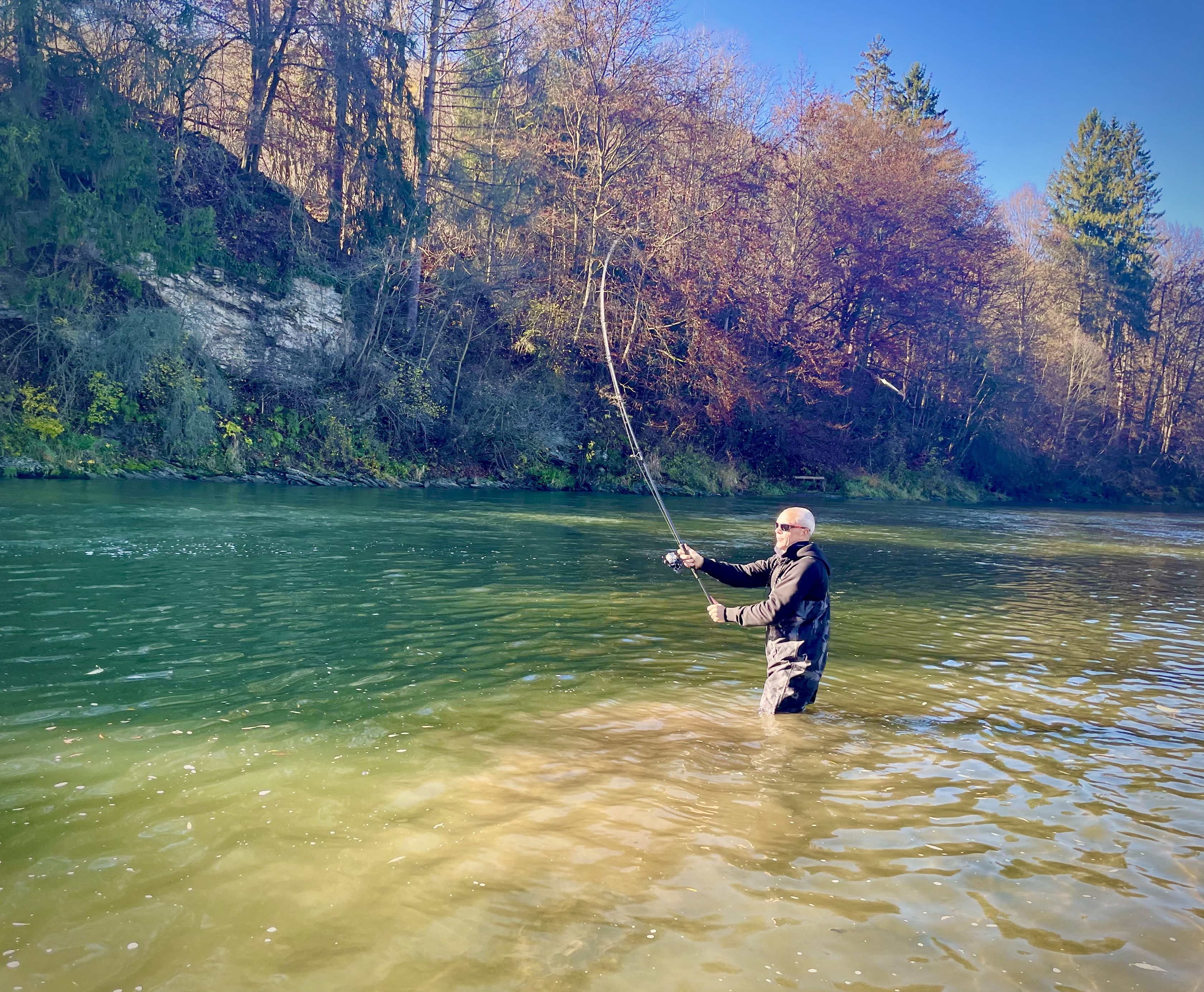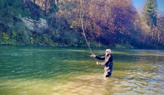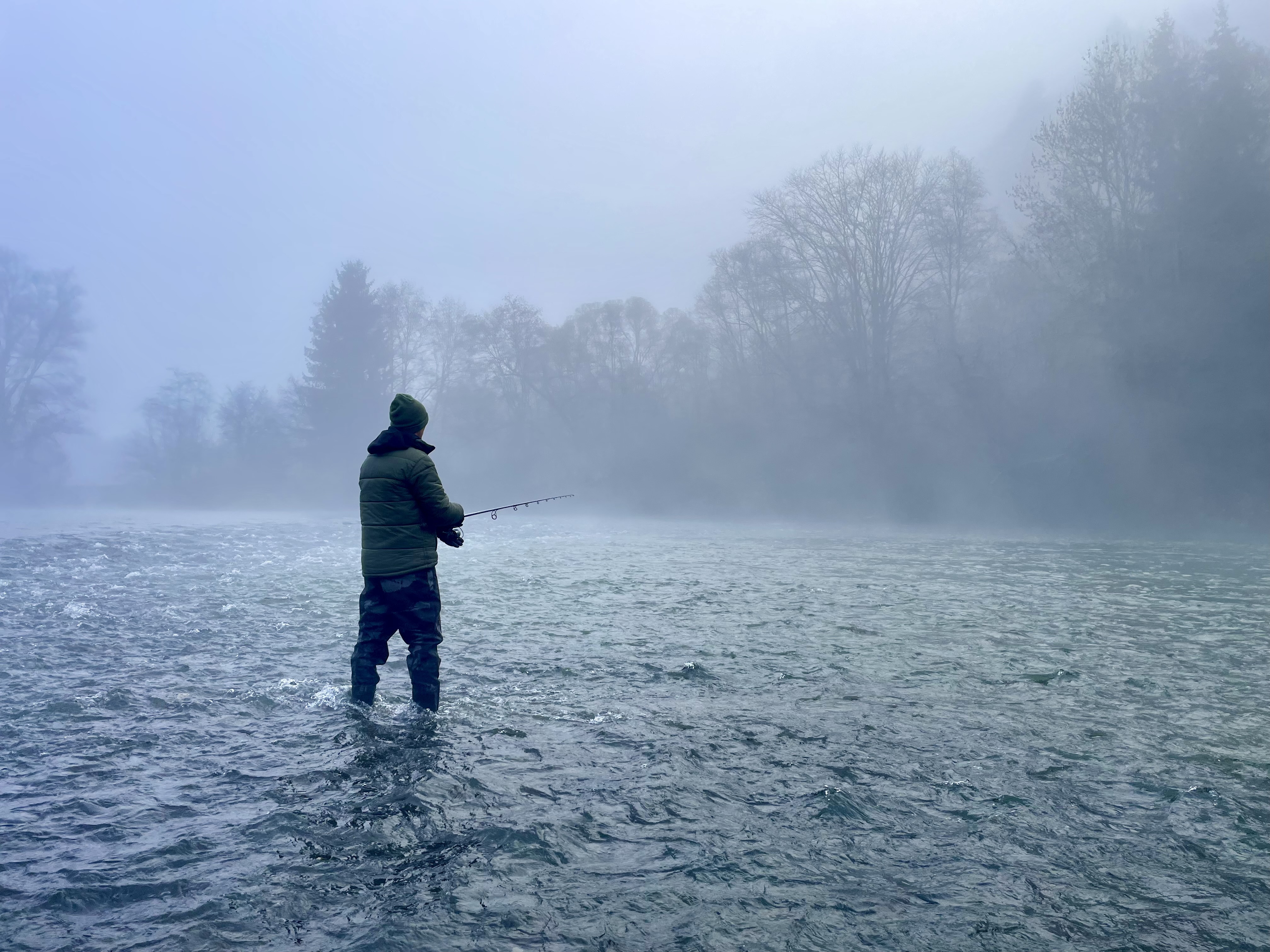 Poslední ráno už jdeme skoro po paměti. Unavení, promrzlí, ale stále ještě odhodlaní. V jednom proudku pod skalou dostávám záběr na woblera v barvě pstruha a konečně mám na prutě rybu! Od začátku vím že nebude velká a zdolání trvá jen chvilku. Mám hlavatku! Není největší, zatím to ještě není královna, ale pro nás je první! A první je jen jedna. Máme radost, chceme další rybu, ale do večera už nic nepřichází. Pomalu balíme a chystáme se na cestu zpět domů.