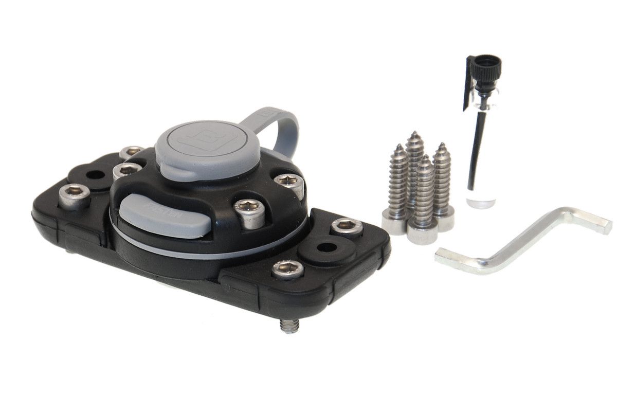 Univerzální rychloupínací držák se základnou (podložkou), díky jehož velmi jednoduše a spolehlivě fungujícímu zámku můžete připevnit jakékoli příslušenství k lodím, jako je sonda sonaru, držák prutů, deska pro obrazovku sonaru, držáky na tablety, telefony, foťáky či Go pro kamery, vazáky kotvy, upevňovací háčky, vesla, hrazdy a další. Všechny tyto Fasten příslušenství mají na koncích speciálně tvarovaný upevňovací bod, který snadno zapadne do rychloupínacího držáku. Pak už stačí jen zasunout pojistku a příslušenství je pevně spojeno s držákem. Držák je dodáván se čtyřmi vruty, čtyřmi šrouby a utahovacím imbusem. S pomocí vrutů nejprve přišroubujete základnu například do zadního zrcadla lodi, nebo jiné pevné desky. Vrchní část držáku poté snadno připevníte k základně pomocí šroubů.