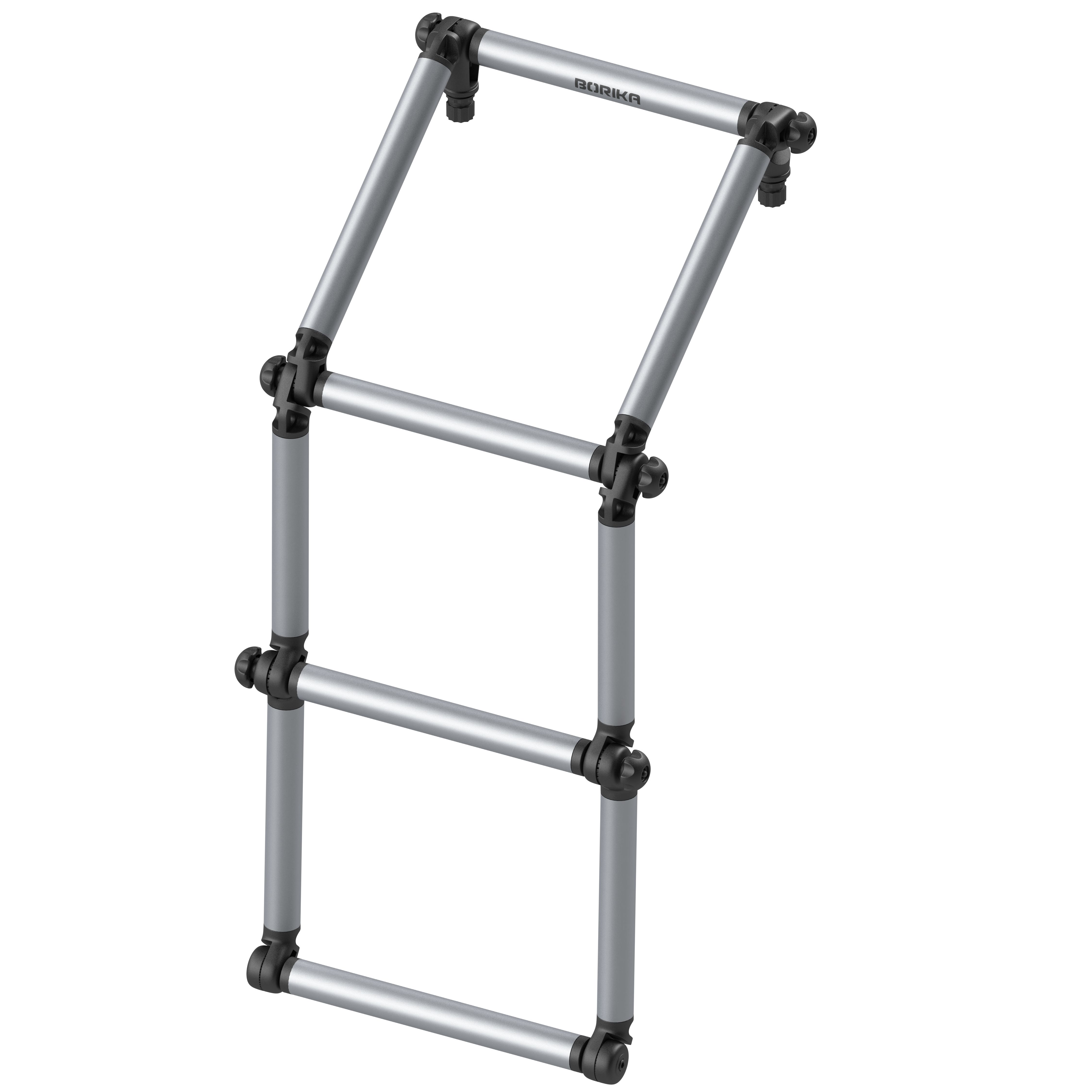 Tento žebřík s průměrem trubek 32 mm a délkou 1 m se instaluje do dvou standardních zámků. Konstrukce má otočné klouby, které umožňují žebříku pohodlné polohování a snadné skládání žebříku pro přepravu. Pozor!!! Abyste se vyhnuli převrácení lodi, doporučuje se montovat žebřík na zadní částí lodi. Pokud jsou žebřík a motor namontované na zádi, ujistěte se, že na přídi je dostatečná protiváha.