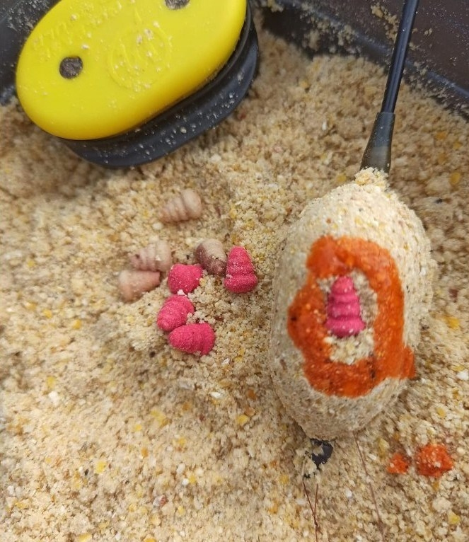Malá "wafterska", balancující na dně, nad krmením a method krmítkem. Pod hladinou se přirozeně naklání s pohyby vody.