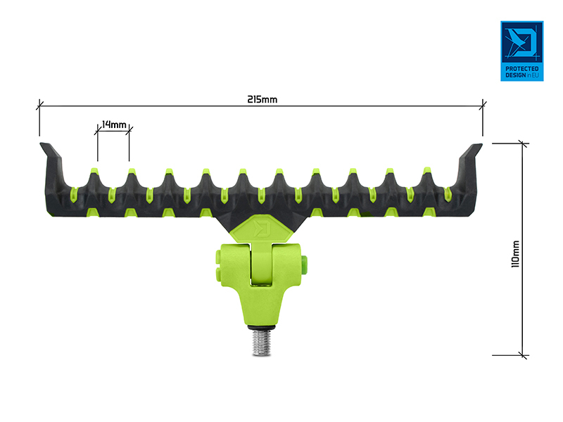 Celý popisJak už název napovídá, model Flexi je plně naklápětelný pomocí jednoduchého mačkacího mechanismu, kterým umožňuje přizpůsobit se různému sklonu prutu, například během lovu na řece, ve větru nebo z nerovného terénu. Díky dostatečné šířce umožňuje upravit polohu prutu po nahození a tak docílit optimálního ohybu špičky bez potřeby nadměrného navíjení vlasce zpět na cívku navijáku. Držák je vyroben z odolných materiálů, takže se snadno nepoškodí a nepoškrábe. Jeho speciálně navržený tvar poskytuje dokonalou podporu prutu a zabrání jeho vysmeknutí i při razantních záběrech. Povrch držáku je potažen pogumovaným materiálem, který je extra šetrný k povrchu prutu a chrání jej před poškozením. Univerzální závit umožňuje uchycení na všechna standardní ramena, stojany a vidličky. Na závitové části se nachází gumová podložka, která zamezuje otáčení držáku. Držák Flexi lze použít i pro lov se dvěma pruty.