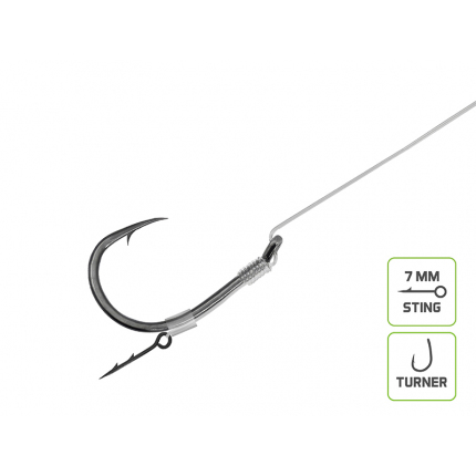 Proměňte čas strávený u vody na efektivní lov namísto zdlouhavé přípravy koncových montáží. Tento hotový feederový návazec je navržen pro okamžité použití, díky čemuž se po příchodu k vodě můžete soustředit na to, co vás baví nejvíc. Návazec je zhotoven z kvalitního fluorokarbonu, který je pod vodní hladinou pro ryby téměř neviditelný. Kromě nenápadnosti vyniká i vysokou odolností vůči oděru, což z něj činí spolehlivou volbu i při lovu v blízkosti překážek či na tvrdém dně. O spolehlivý zásek se starají ověřené modely háčků Turner a Chinu. Jejich specifický tvar a výjimečná ostrost zaručují bezpečné zdolávání a minimalizují riziko ztráty ryby během souboje. Sestava je zakončena nástrahovým trnem, který umožňuje rychlé a bezpečné nastražení různých typů nástrah, jako jsou plovoucí boilie či waftersky. Díky různým kombinacím velikostí háčků a délek návazce se dokonale přizpůsobíte aktuálním podmínkám pod vodní hladinou.