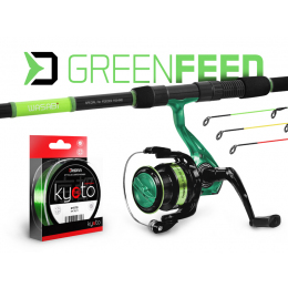 Pokud se neumíte rozhodnout, jak si zkombinovat spolehlivou feederovou sestavu, tak přesně pro vás je zde feederový set Delphin GreenFEED. Set se skládá z třídílného prutu Delphin WASABI Feeder, blank je vyroben z ideálního poměru kompozitních materiálů. Rukojeť z EVA pěny padne do ruky při zdolávání i nahazování. Akce prutu je příjemná a bonu...