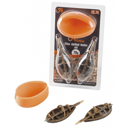 Celý popisFIlfishing Method Feeder Set je sada nejuniverzálnějších a nejpoužívanějších krmítek pro úspěšný lov technikou method feeder. Set obsahuje dvě krmítka a silikonovou formičku, se kterou velice rychle, snadno a téměř dokonale krmítka naplníte. Formička je vyrobena v reflexní oranžové barvě, aby byla co nejvíce viditelná, tím se minimalizuje její neusálé hledání i případná ztráta. Samotná krmítka jsou velice aerodynamická a lze s nimi snadno a daleko nahazovat. Zátěž na zadní straně krmítka je velice dobře rozložená a díky výstupkům tato krmítka dokonale drží na krmném místě i v prudším proudu.