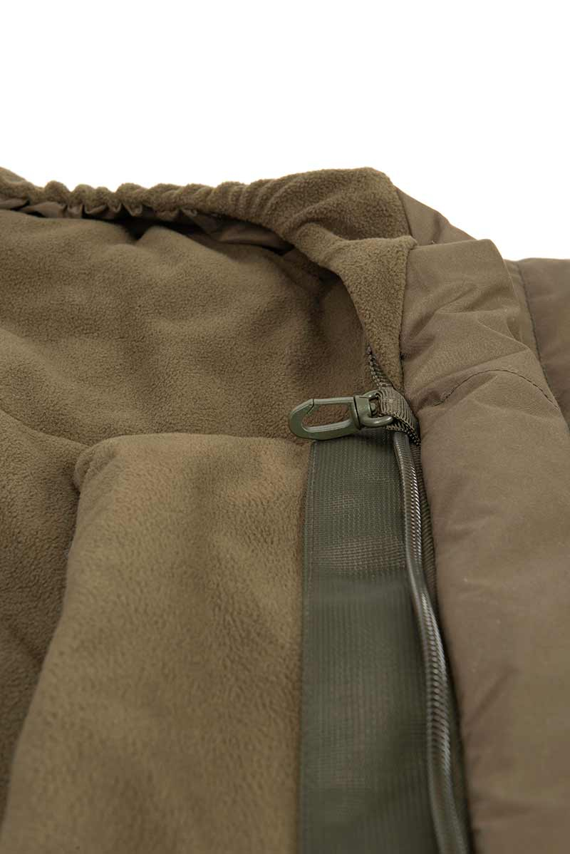 - Vnitřní spací pytel má spodní stranu s podšívkou s mikro flísu a horní stranu s sherpa flísovou podšívkou zadržující teplo nebo jej lze obrátit naruby s podšívkou s polyesteru
