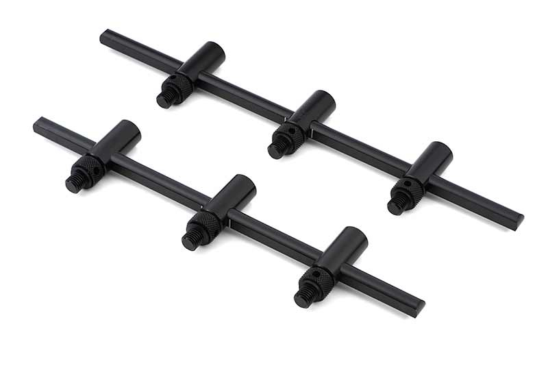 - Závity lze snadno a rychle sundat nebo přidat k hrazdě pro 2 pruty bez sundání podpěr nebo signalizátorů