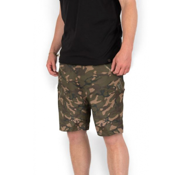 Kraťasy ve Fox Camo vzoru s elastickým pasem s očky pro pásek.