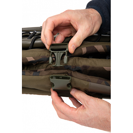 - Pár dvojitých pantů umožňuje složení spacího pytle ponechaného na lehátku