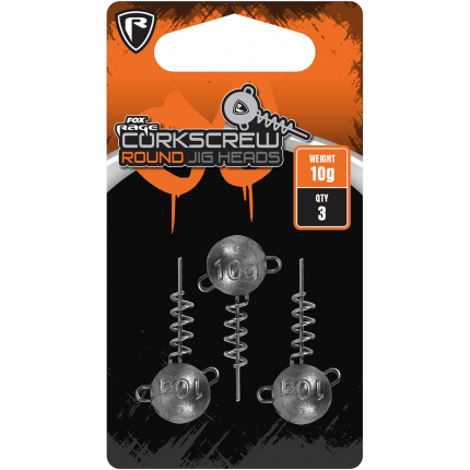 Fox Rage Jig Heads Three Pack Corkscrew 3ks 10g, Round