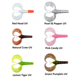 - K dispozici v šesti vysoce atraktivních barevných variantách Ultra UV: Green Pumpkin, Lemon Tiger, Pink Candy, Natural Craw, Pearl and Pepper a Red Head