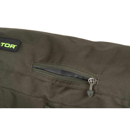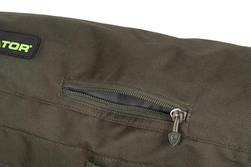 - Prostorný: pojme až tři navázané pruty i další vybavení, jako je sak na přechování ryb a podběrák Fox Rage Predator.