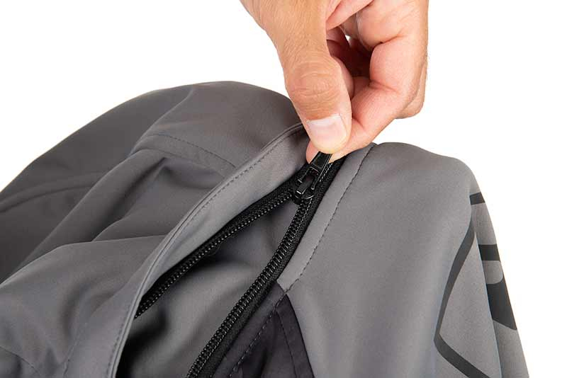 - Dvě přední kapsy na zip, plus náprsní kapsa na telefon na zip