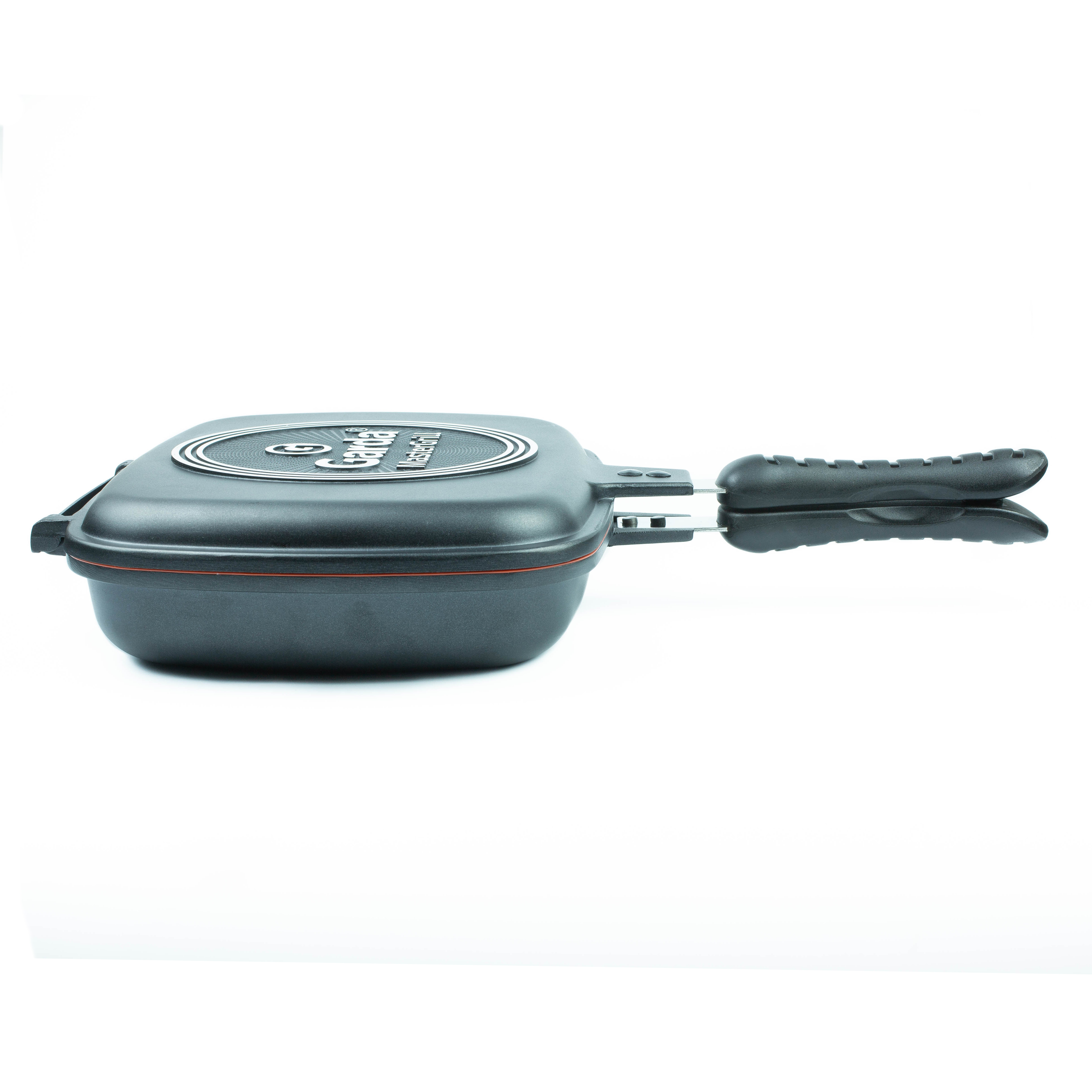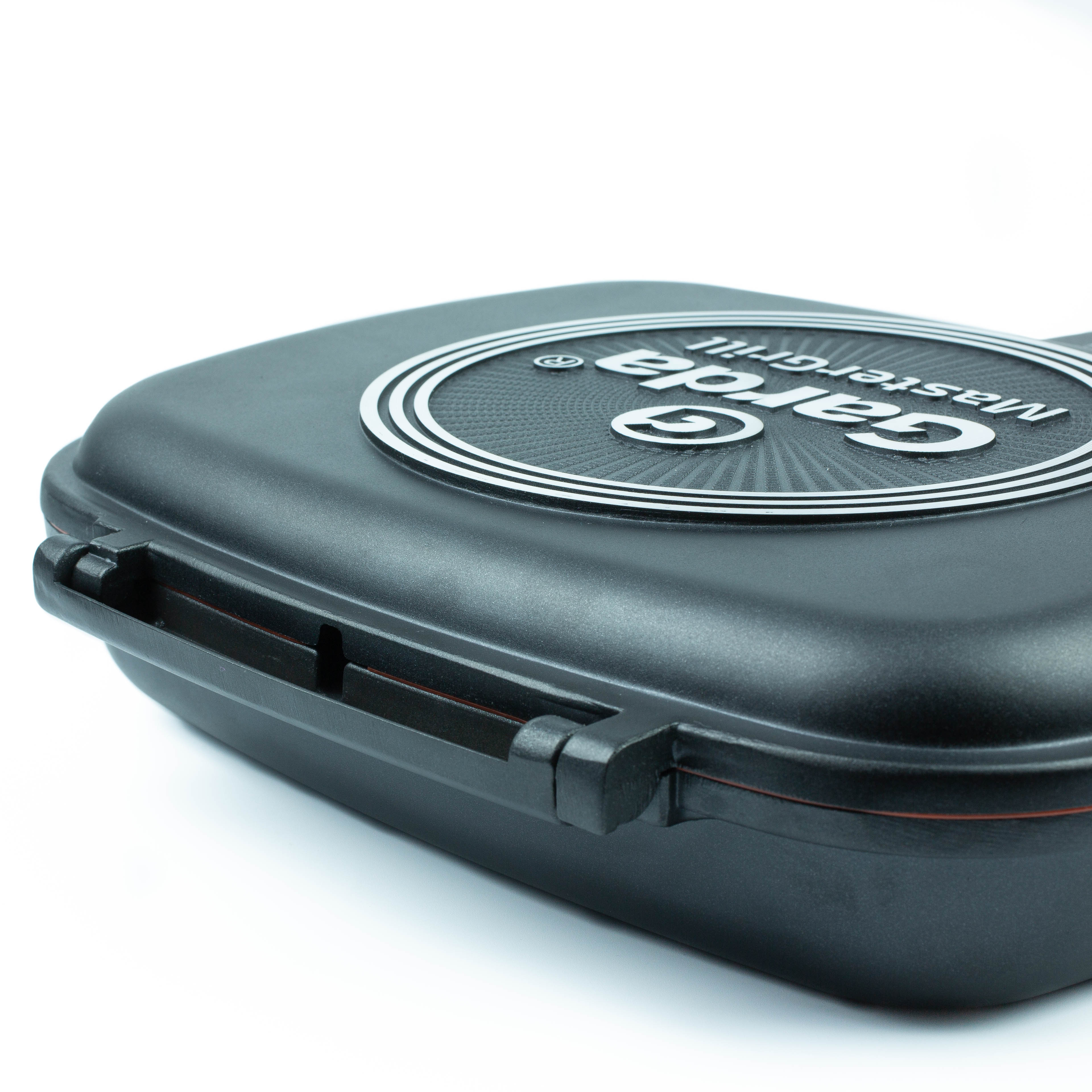 Pánvička Garda Grill Master je ideální pomocník pro přípravu jídla u vody. Skládá se ze dvou pánví o rozměru 27 x 24 cm, z nichž jedna je hlubší a jedna mělčí. Má oboustranný nepřilnavý povrch, krásný design, dva různé povrchy dna, speciální těsnění mezi oběma pánvemi a pohodlnou rukojeť s magnetickým klipem. Je z vysoce kvalitní litiny, která zaručuje životnost po mnoho let. Jídlo se na ní nepřichytává, proto se velmi snadno čistí. Je skvělá pro grilování, opékání, pečení, smažení, přípravu toastů a další úpravu jídel, dokonce v uzavřeném stavu funguje podobně jako „papiňák“. Její vyšší hmotnost je jednak známkou kvality materiálu, navíc zajišťuje stabilitu na vařiči. A v neposlední řadě vám do ruky dává pádnou zbraň při ochraně před sousedními rybáři, divokými prasaty či neohlášenými porybnými. Rozměry: 24x27x7cm + 18cm rukojeť Hmotnost_ 1.285g