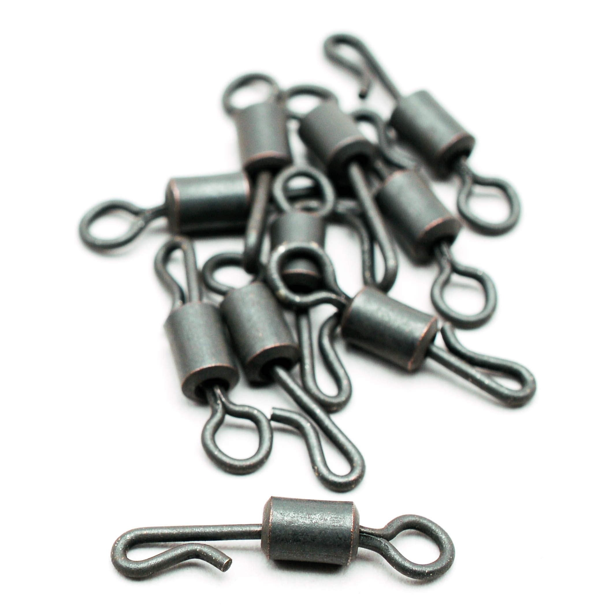 Garda vysokopevnostní matný tmavý obratlík s rychlovýměnným klipem. Ideální volba pro většinu typů rybářských montáží. č.8 10ks