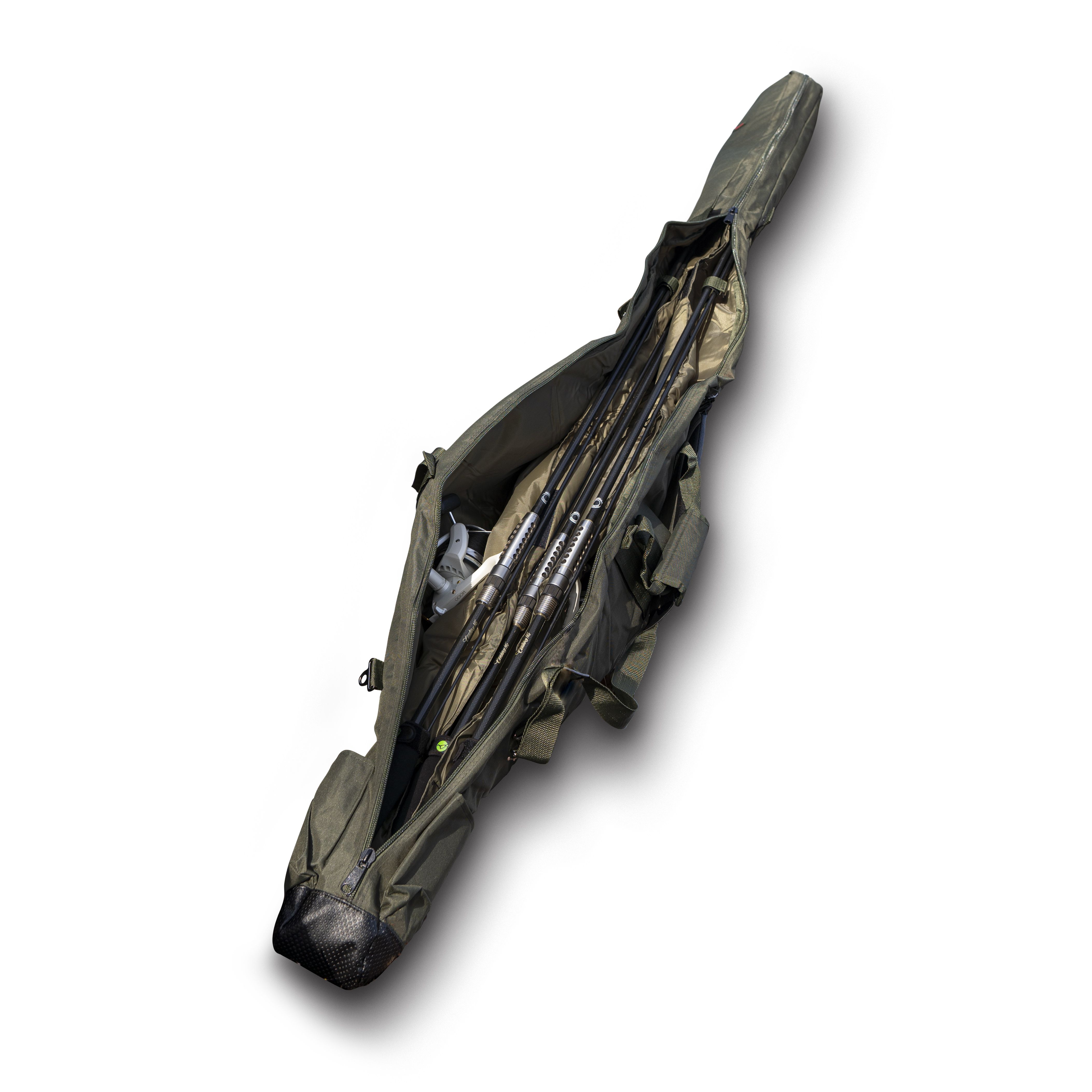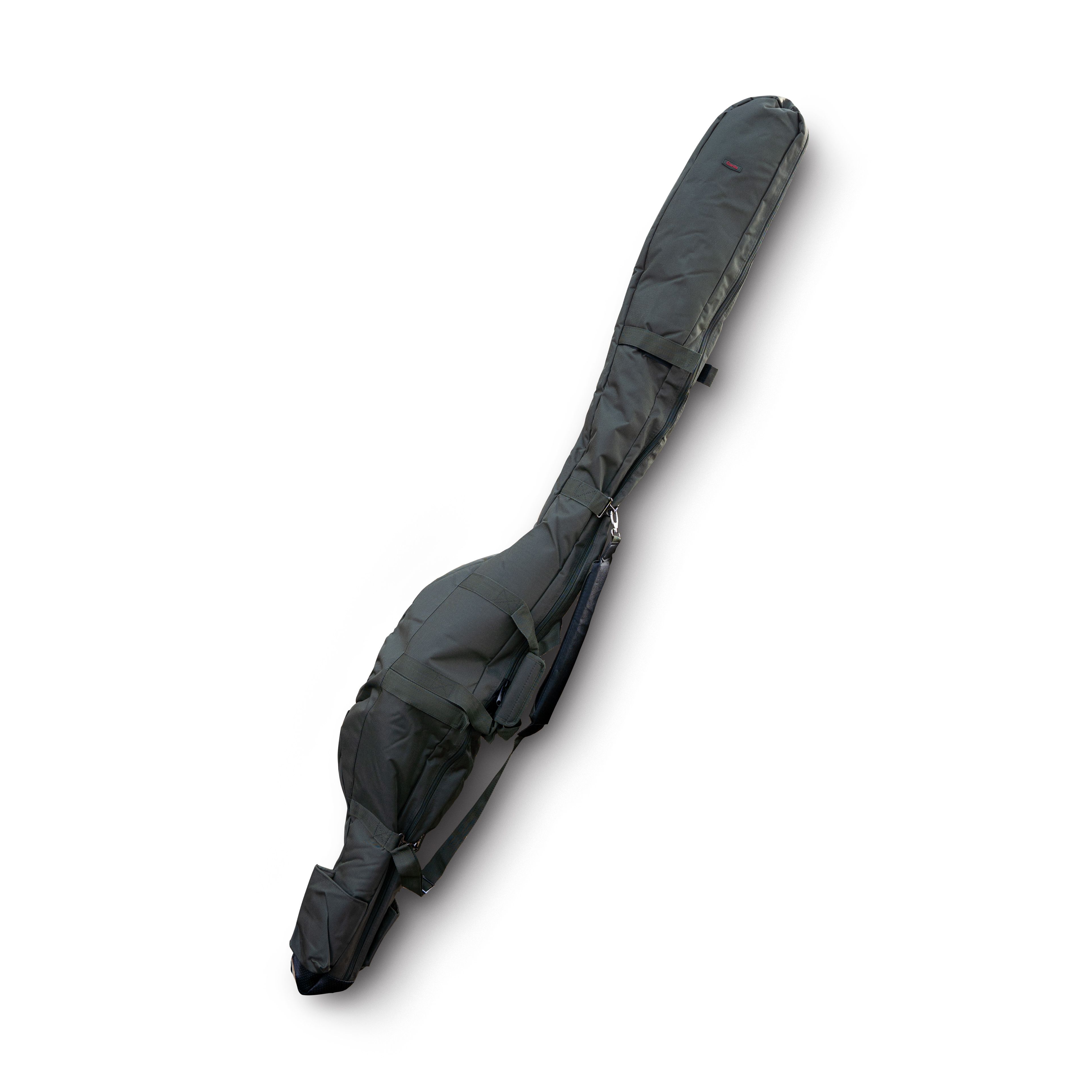Pouzdro Master Combo pojme 2 až 3 kompletně sestavené pruty a k tomu i další příslušenství, jako je například podběrák, deštník, vidličky, carbonová tyč a další. Pouzdro je multifukční, detailně propracované, perfektně zpracované, silně polstrované, má silný kovový zip a komfortní nastavitelný popruh. Je dostatečně dlouhé a široké, aby snadno pojmulo dva nebo tři kompletně sestavené pruty s velkými navijáky. Vrchní materiál v decentní zelené barvě je vodoodpudivý. Vnitřek je z jemnější tkaniny, mezi tím je dostatečně silné polstrování. Všechny tři vnitřní komory jsou od sebe oddělené polstrovanou výplní, ta prostřední má navíc suché zipy na úplné uzavření. Suchý zip na uchycení prutu je i ve všech třech komorách. Úchopy pro ruční přenášení mají zesílenou výztuž, kterou lze spojit obě poutka k sobě, silně polstrovaný popruh umožňuje nastavit jej podle vaší výšky. Na spodku pouzdra je bytelné pogumování chránící proti vlhku a bahnu. Po obou vnějších stranách jsou kapsy a nad nimi ve dvou úrovních suché zipy, které umožňují uchycení dlouhých předmětů, jako je tyč k podběráku, vidličky, deštník atd. Decentní logo Garda ve vrchní části podtrhuje skvělý design produktu. Pouzdro na prut Master Combo 12ft – délka 200 cm, šířka nahoře 23 cm, šířka dole 35 cm
