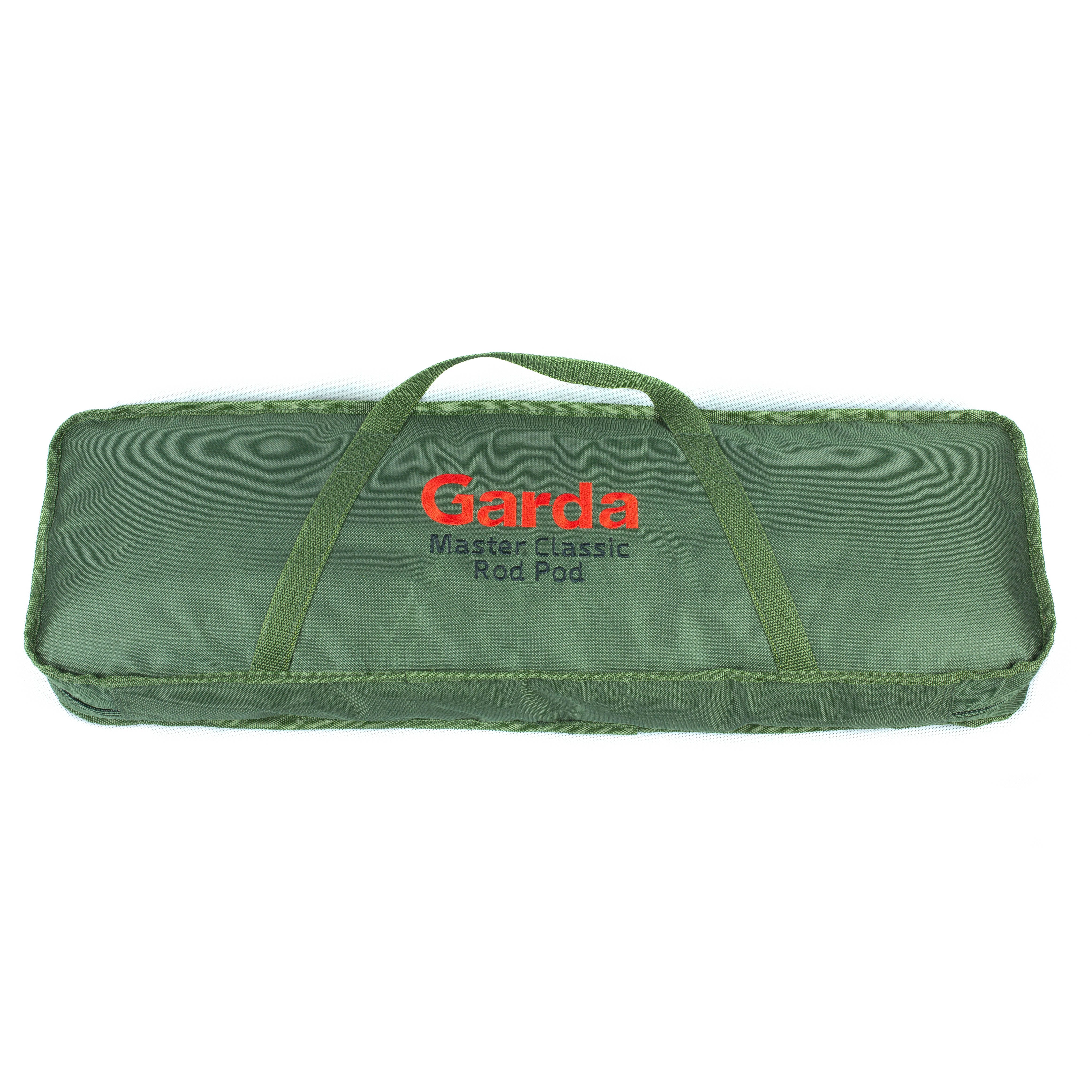 Garda Master Classic Rod Pod je krásný velmi lehký stojan ze slitinové slitiny ve stylové v černé barvě. Jeho výhodou jsou univerzálnost použití, kompaktní rozměry, stabilita, snadné a rychlé sestavení, nízká hmotnost, kvalita materiálu a zpracování. Stojan se hodí na veškeré typy vod, je též výborný při použití na molech. Tělo i nohy jsou výsuvné. Díky tomu je možné přizpůsobit stojan nerovnostem terénu. Výšku přední a zadní hrazdy lze také regulovat pomocí vodících sloupků. Pruty tak lze natáčet špičkami nahoru, nebo dolů. Šířka hrazd umožňuje dát tři pruty s velkými (big pit) navijáky vedle sebe, aniž by se dotýkaly kličkami. Nohy není nutné při skládání demontovat, snadno je sklopíte podél těla stojanu. Master Classic Rod Pod se dodává s dvěma pevnými hrazdami na tři pruty, je uložen v kvalitním pouzdru z vodoodpudivé tkaniny. Hmotnost_ 1.670g Délka hrazd_ 40cm (zadní) a 46cm (přední) Výška stojanu (bez hlásičů): od 34cm do 63cm Délka stojanu_ od 77cm do 130cm (při vysunutí) Rozměr pouzdra_ 70x22x5cm