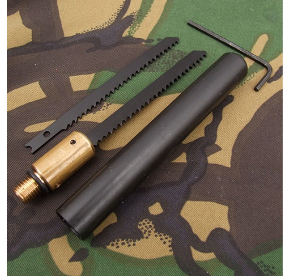 Kapesní pilka Bank Saw je ideálním pomocníkem pro místa, kde je potřeba před zakotvením udělat trošku pořádek. Kapesní pilka může být lehce našroubovaná na rukojeť podběráku a použita tak pro místa, kam naše ruka nemá šanci dosáhnout. V balení dvě listy pilek rozměrů 8TPI a 6TPI. Ochraná nasouvací rukojeť, imbusový klíč pro výměnu listů pily a dále šroub o rozměru 3/8 BSF, který lze namontovat na všechny typy podběrákových rukojetí. Vyrobeno v UK.