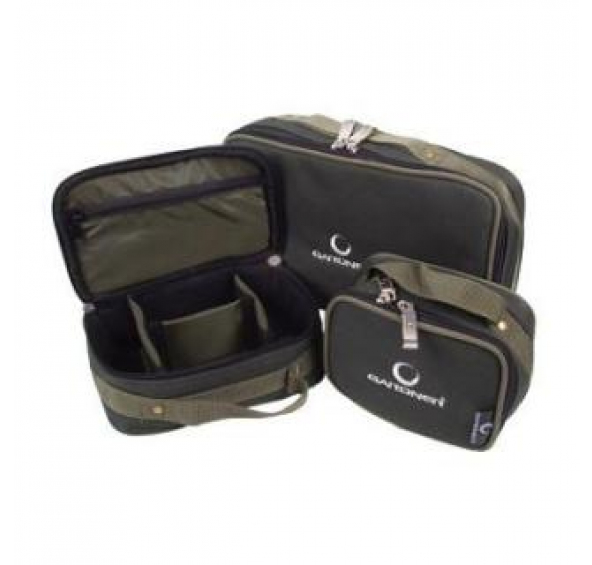 Pouzdro na příslušenství. Ve třech velikostech.Vodě-odolný povrch s vnitřními kapsami. Součástí jsou odjímatelné sekce.Pouzdro vel.L obsahuje 25cm tubus pro uskladnění jehel, splávků a jiné. Rozměry: D 32 cm x Š 20 cm x V 8cm.