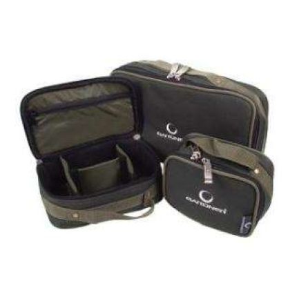 Pouzdro na příslušenství. Ve třech velikostech.Vodě-odolný povrch s vnitřními kapsami. Součástí jsou odjímatelné sekce.Pouzdro vel.L obsahuje 25cm tubus pro uskladnění jehel, splávků a jiné. Rozměry: D 32 cm x Š 20 cm x V 8cm.