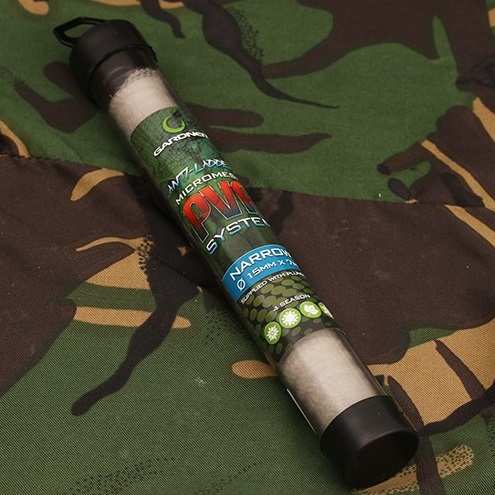 Nové PVA s označením Narrow Micro-Mesh je tou ideální velikostí pro vytvoření menších porcí, může být použito v kombinaci s veškerým suchým krmením nebo s pártikly, které se přátelí s PVA, tedy PVA friendly. Obsahuje 15mm PVA síťovinu, která je nasunuta na plastový tubus, je ideální pro tvoření menších PVA pytlíků. Každé PVA obsahuje kromě zmiňovaného tubusu a PVA síťoviny také pěchovač, který je nutným a samozřejmým doplňkem této sady. Obsah PVA síťoviny je 7m, hodí se pro celosezónní chytání.