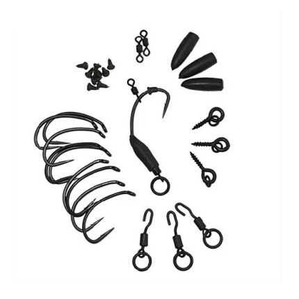 Sada na montáž Ronnie Rig v kompletním balení včetně již hotového návazce Ronnie Rig. Sada obsahuje: - 1 x hotový návazec Ronnie Rig - 9 x háček bez protihrotu - 9 x zarážka Hook Stops - 3 x rukávky Tungsten Ronnie Sleeves - 3 x obratlík QC Hook Flexi-Ring Swivels - 2 x obratlík Hook Swivels - 3 x kolíček s kroužkem Flexi Bait Screws