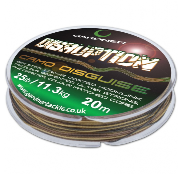 Polotuhá, extra pružná šňůra. Neutrálně hutná, ultra silná s užším průměrem. Polotuhá, extra pružná šňůra. Neutrálně hutná, ultra silná s užším průměrem. Je dostupná ve dvou dvoubarevných kombinacích (zelenočerná a hnědočerná) ad každé ve dvou vahách. Barva šňůry se mění každých 12cm (maskáčová). Technické údaje: Délka: 20m Nosnost: 15lb Nosnost: 25lb