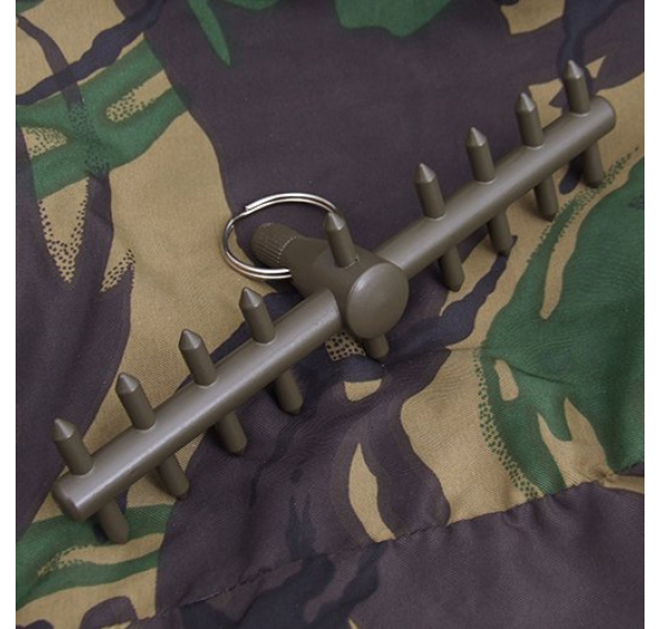 Originální provedení podvodních čistících hrábí použitelných pro kapraře na odstranění travních porostů a řas, které pokrývají dno. Ideální k pročištění lovného místa. Perfektní nástroj pro rybáře, kteří si rádi své místo uhrabou, aby rozvířili usazeniny a bezobratlé živočichy v bahně, a tím stimulovali především takové druhy, jakými jsou líni, a zaradní hrábě můžete s klidem nechat doma! Specifikace: - robustní, celokovová konstrukce - součástí je dělený kroužek pro navázání provazu či lanka - 3/8 BSF závit s krycím šroubem k upevnění na většinu podběrákových tyčí - zleneá atikorozní úprava - rozměry: 23 x 5,7 cm - hmotnost: 250 g - osazeno 18 hroty o délce 1,5 cm