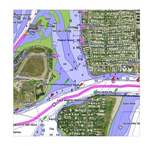 Edice BlueChart® G3 VISION™ zobrazuje 3D módy (nad i pod hladinou), Auto navádění na detailních mapách ve vysokém rozlišení a letecké snímky přístavů, marín, námořních drah a POI. Nabízí podrobné zobrazení pobřeží a přístavů na moři i pevnině s body zájmu.