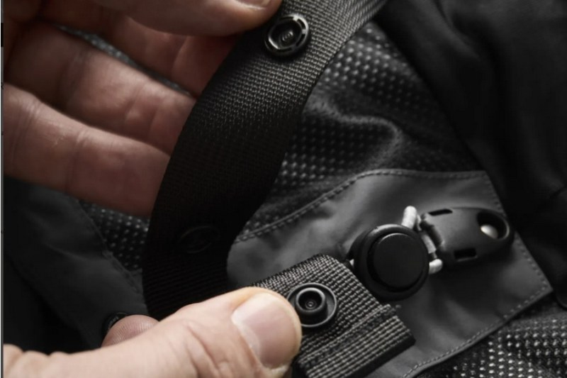 Bunda Dozer Light má vestavěné popruhy, které umožňují nošení bez navlečených rukávů. Systém popruhů lze odepnout a jednoduše uskladnit přímo v bundě do vnitřní kapsy.